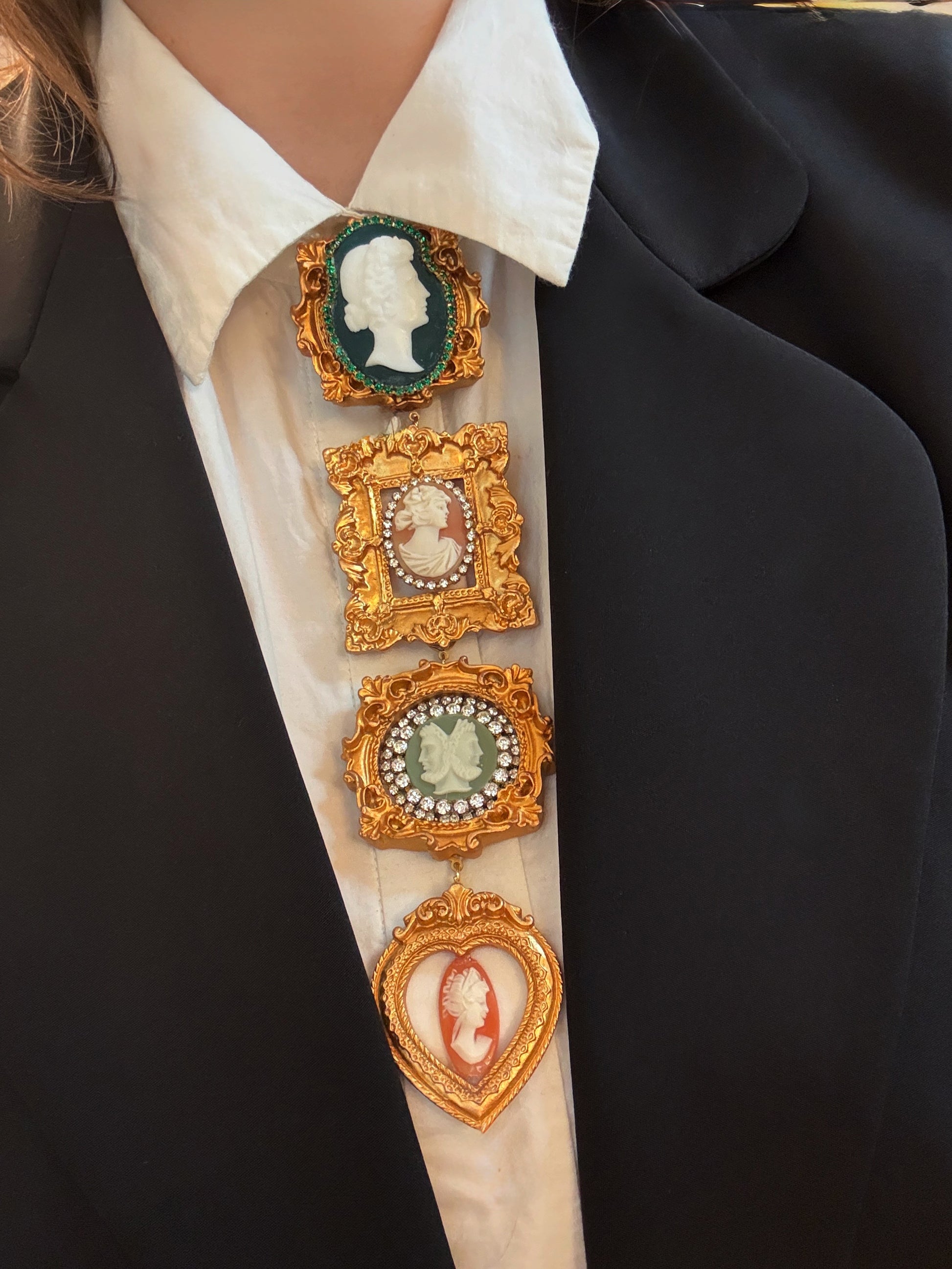 8" length vintage cameos and rhinestones on a freshwater pearl chain