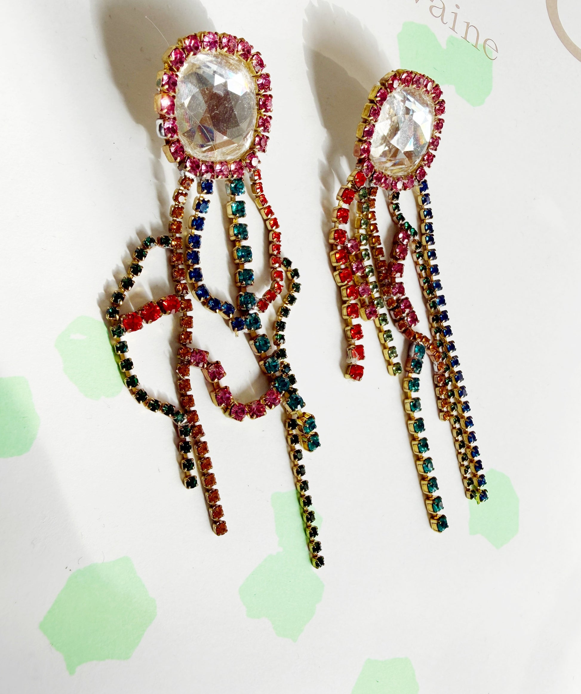 Handmade one of kind earrings made with colorful swarovski crystal chain