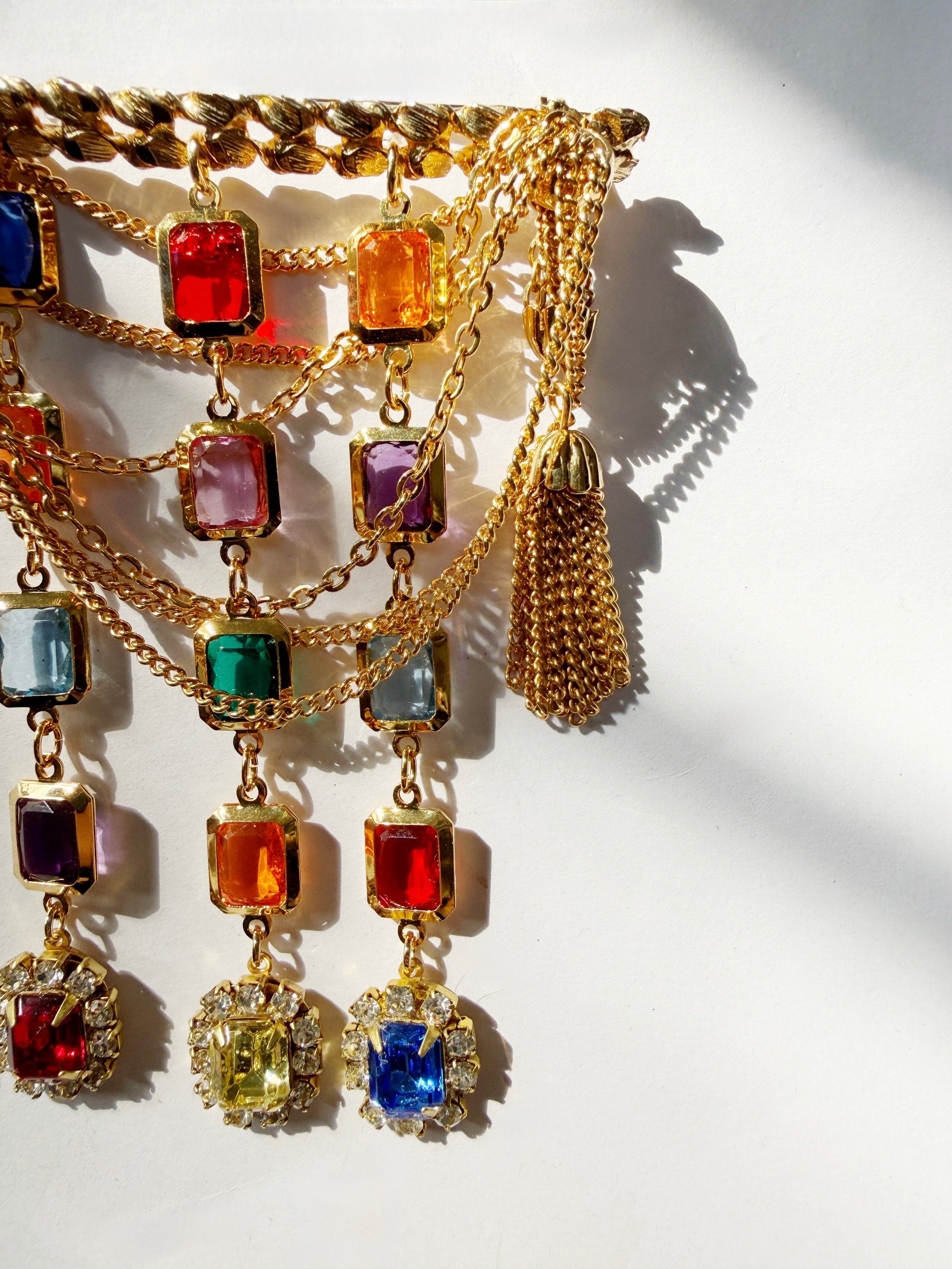 One of a kind brooch with vintage acrylic pieces and rhinestones