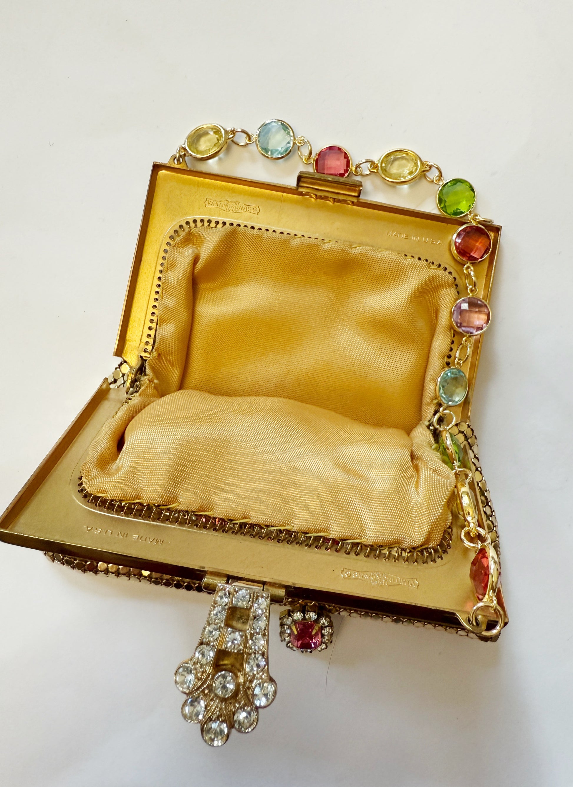 Vintage gold Mesh mini purse with an added face* handmade nose, rhinestones eyes, and red lips and a blue rhinestone tears